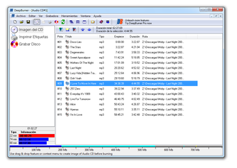 Simple pero muy eficiente, la sencillez de DeepBurner se refleja también en el diseño de su interfaz, dividida en dos ventanas: una con la estructura de directorios del disco local, y otra que representa el contenido del CD o DVD y donde puedes simplemente arrastrar y soltar los archivos que quieras grabar.